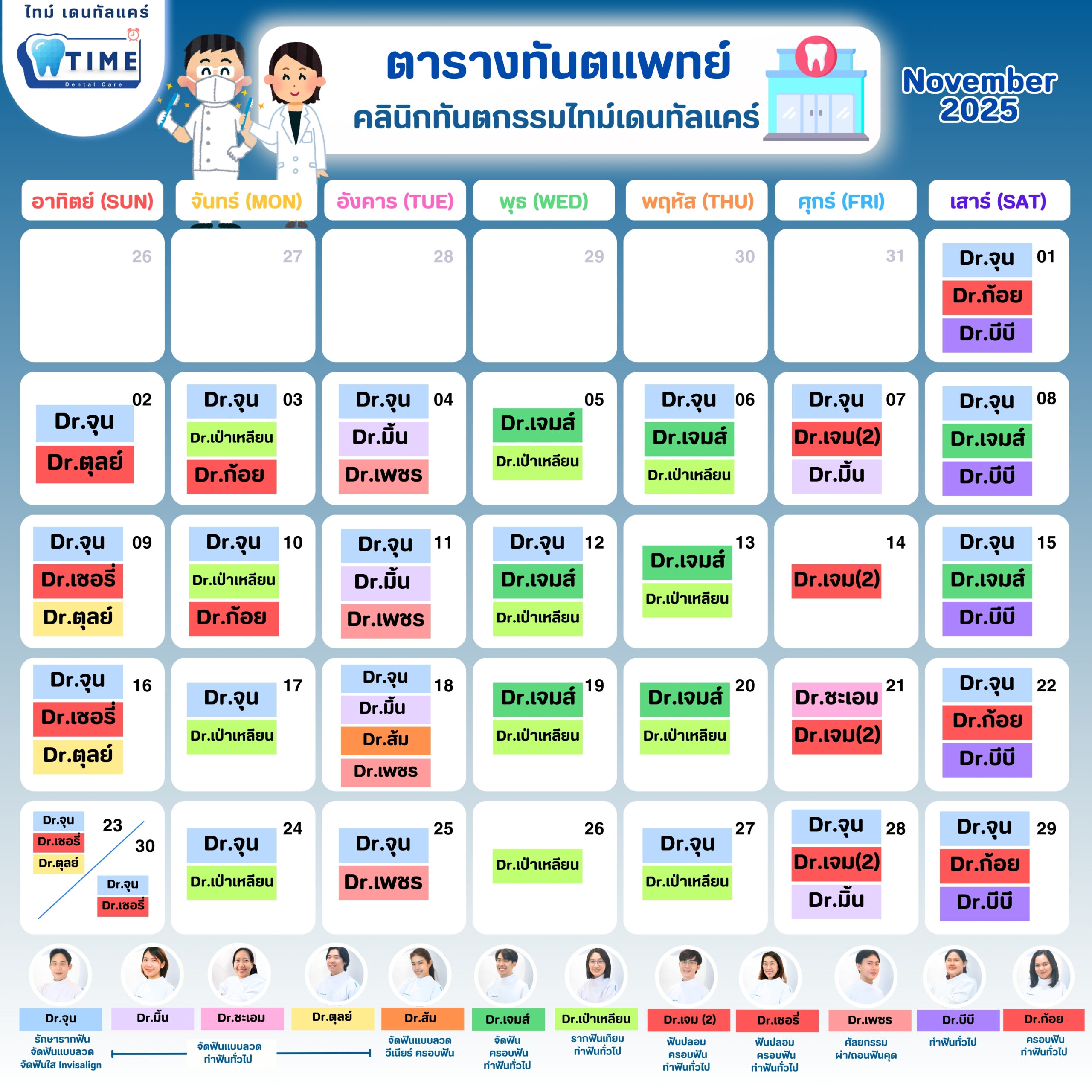 ทีมทันตแพทย์ของ Time Dental Care ประกอบด้วยทันตแพทย์ที่มีความเชี่ยวชาญและประสบการณ์ในการให้บริการทันตกรรมทุกรูปแบบ พวกเขามีความสามารถในการรักษาและดูแลสุขภาพช่องปากของผู้ป่วยอย่างมืออาชีพ ซึ่งมั่นใจได้ว่าจะได้รับการรักษาที่มีมาตรฐานและปลอดภัย